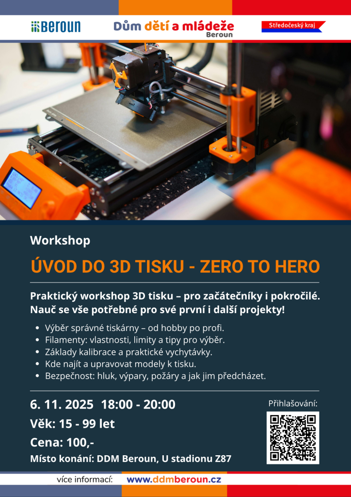 Přijď na praktický workshop, kde se dozvíš vše, co potřebuješ k začátkům i rozšíření svého 3D tiskařského světa. Akce je vhodná pro úplné začátečníky i středně pokročilé tiskaře.