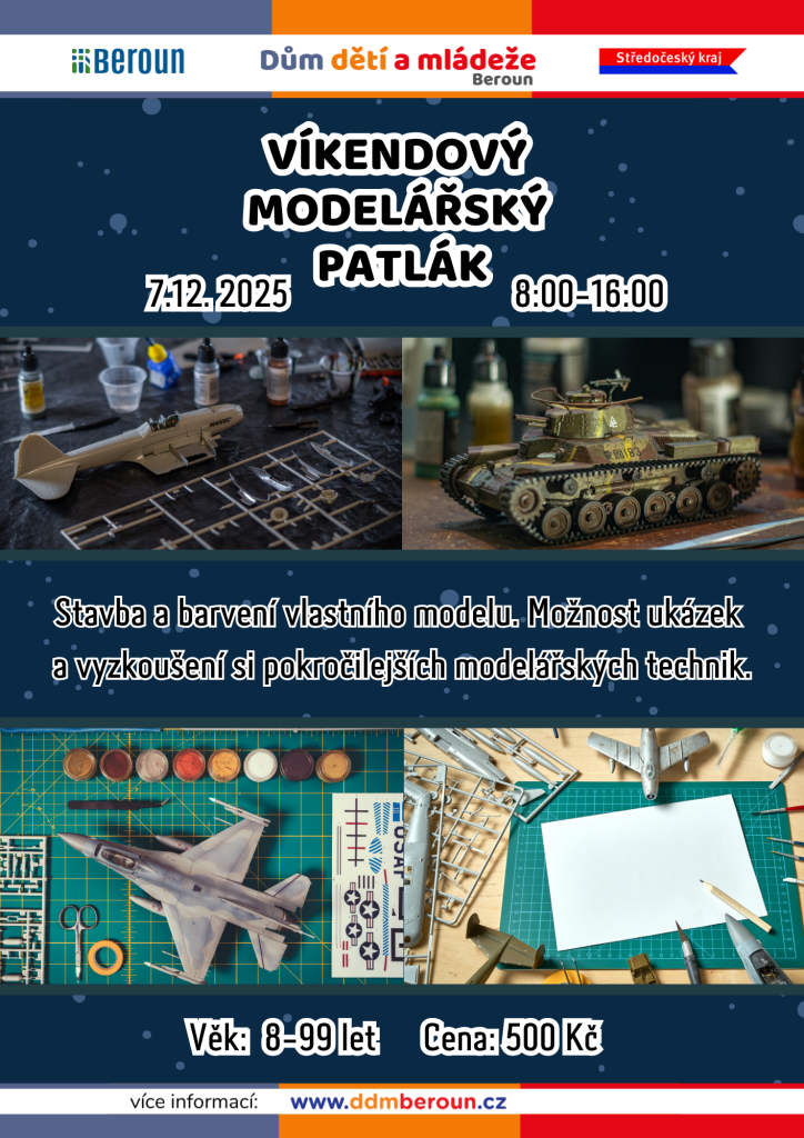 Stavba a barvení vlastního modelu. Možnost ukázek a vyzkoušení si pokročilejších modelářských technik.